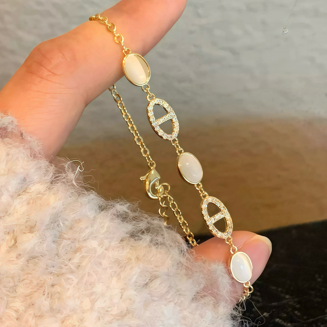 Oval Cat Eye Stone Diamond Encrusted Bracelet