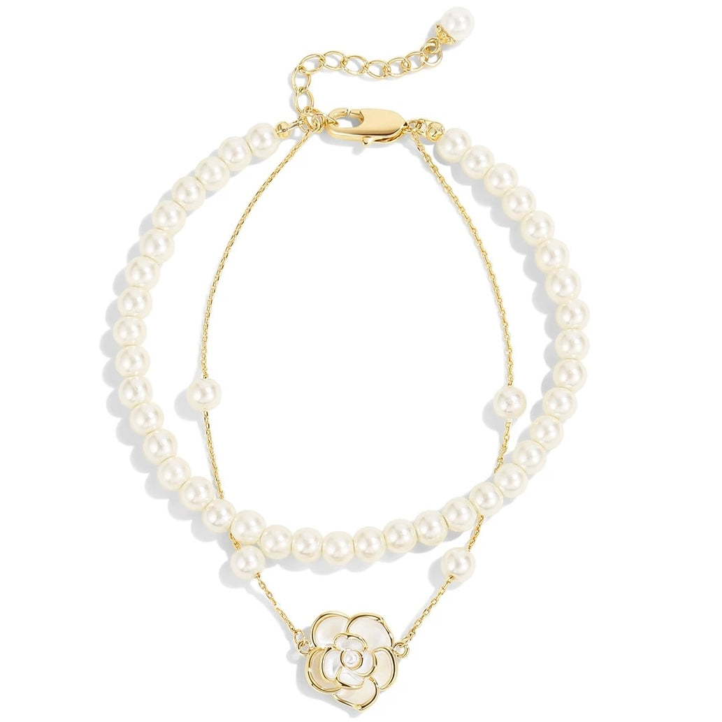 Pearl Camellia Double layer Bracelet