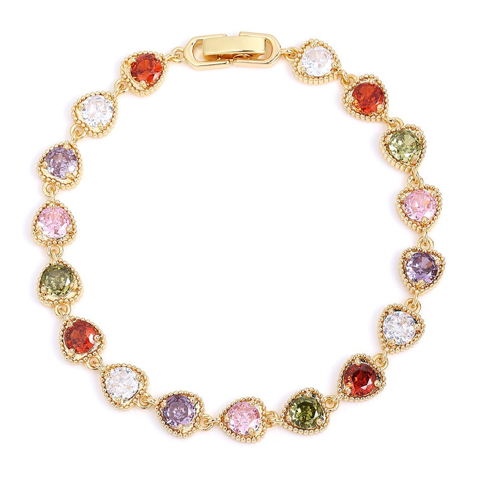 Colorful Zircon Heart-shaped Bracelet