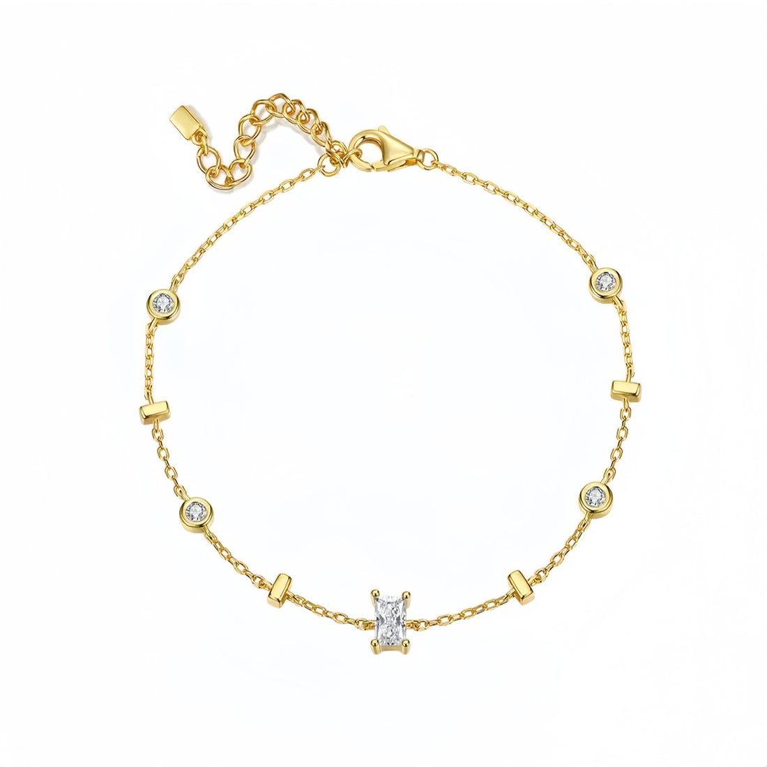 Material: plated with 18K gold/silver (thickened electroplating)Weight: 2gSize: Bracelet Length: 14.5cm/5.71inExtend the chain length by...