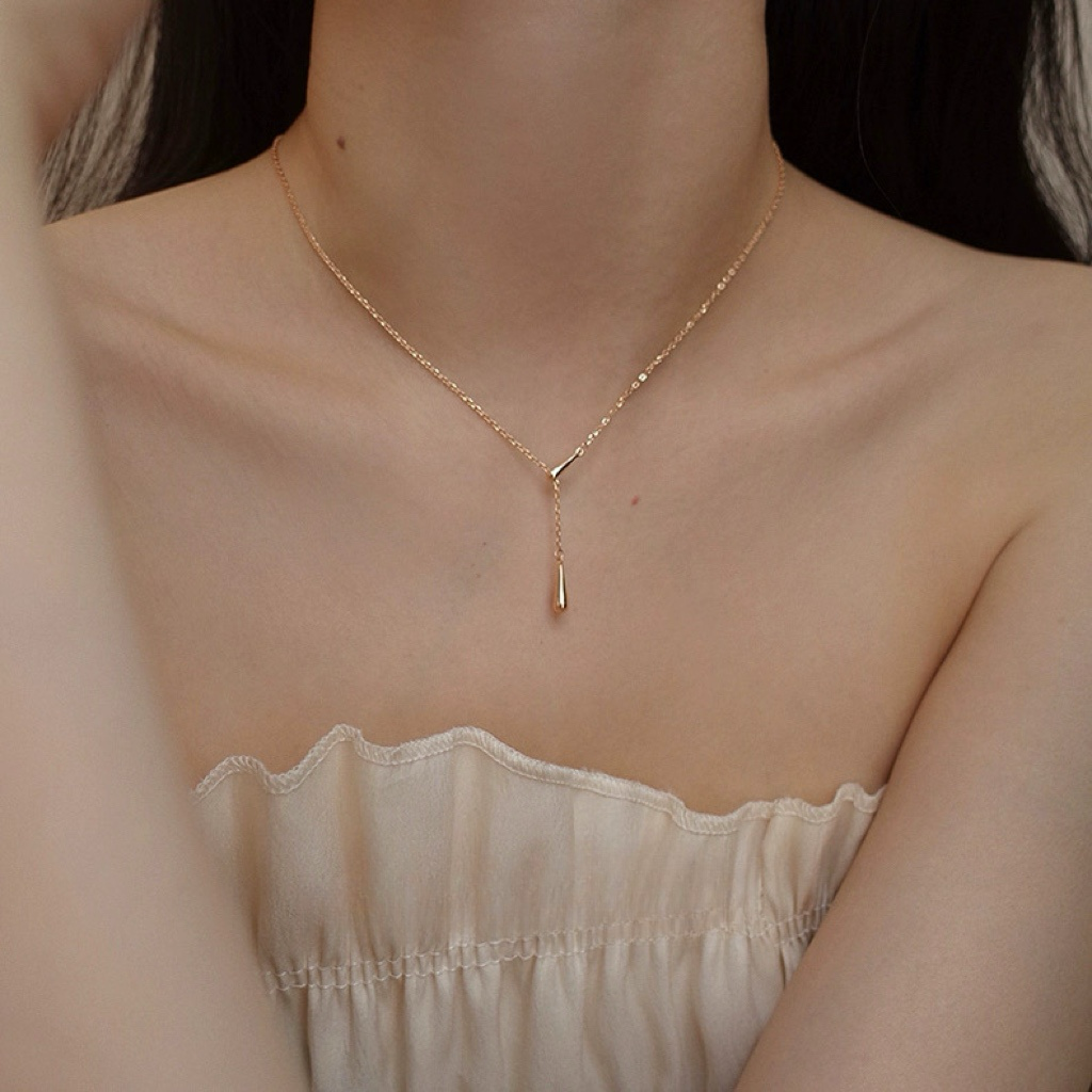 18K Gold Water Droplet Fringe Y-shaped Necklace