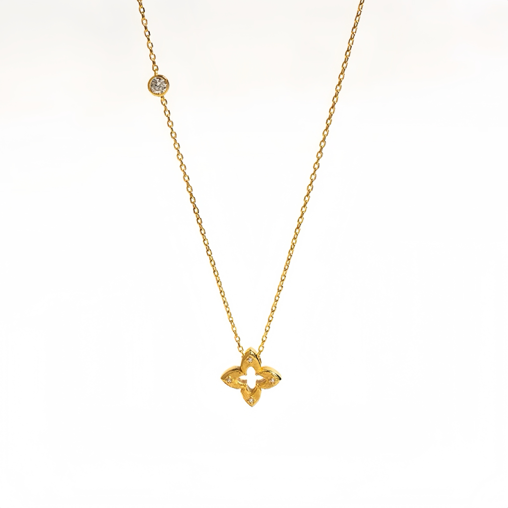 18K Gold Hollowed Out Diamond Inlaid Clover Necklace