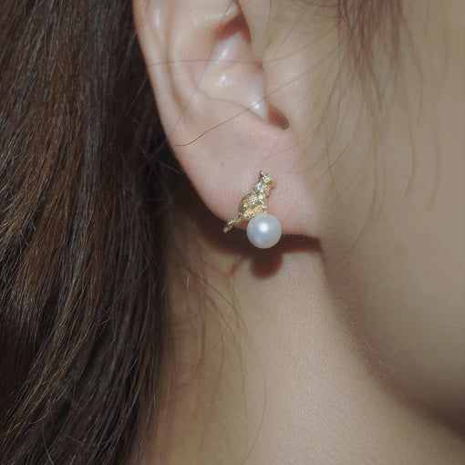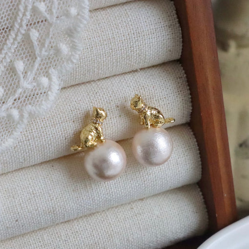 素材: 銅金メッキ、ジルコン、コットンパール、S 925シルバーニードル