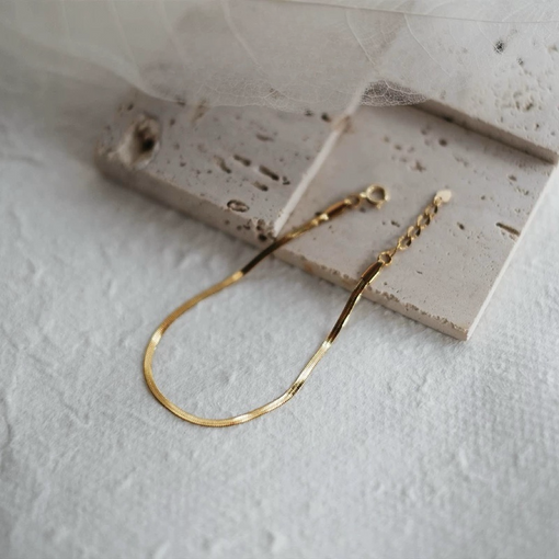 14K ゴールドメッキ スクエア スネーク ボーン ブレスレット