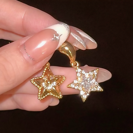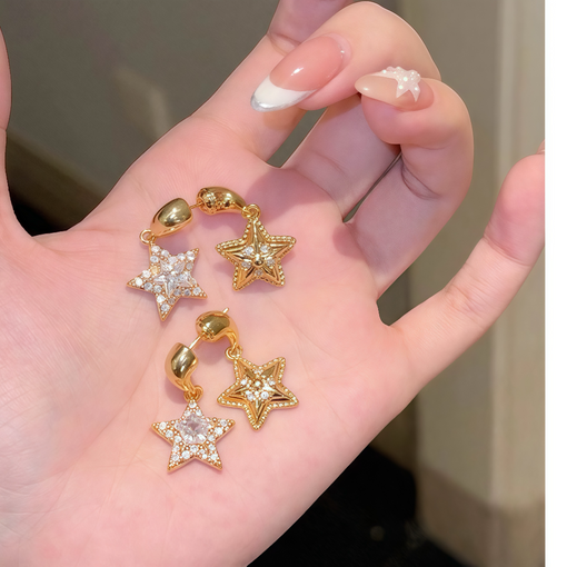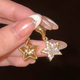 18K Gold Double-Layer 3D Star Earrings With Pavé Diamonds