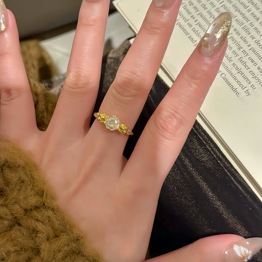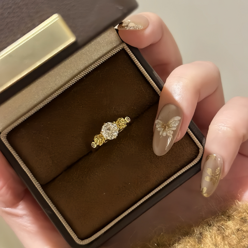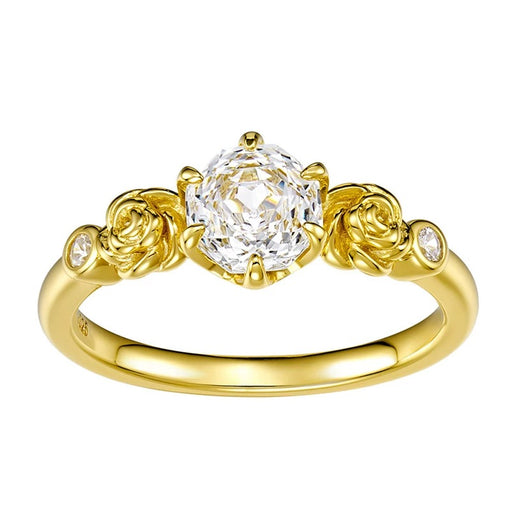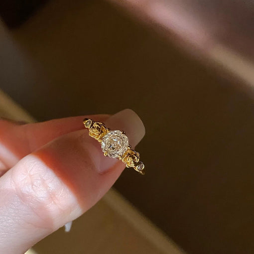 18K Gold Rose Motif Six-Prong Solitaire Ring