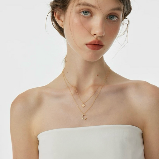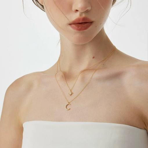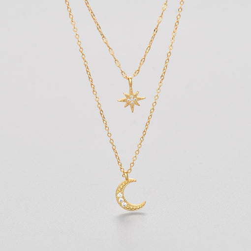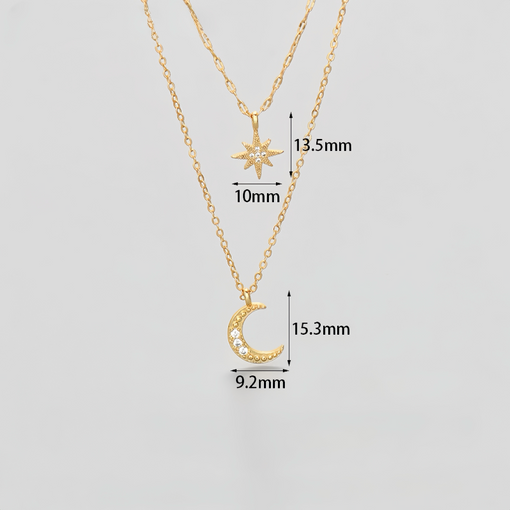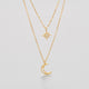 18K Gold Star Moon Pendant Double Layer Necklace