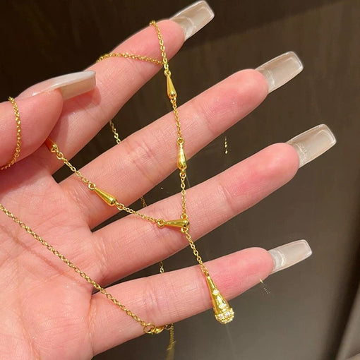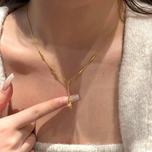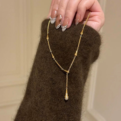 18K Gold Water Droplet Fringe Y-shaped Necklace