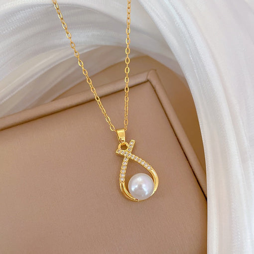 1pc Golden Leaf pearl Necklace Earrings Jewelry Set