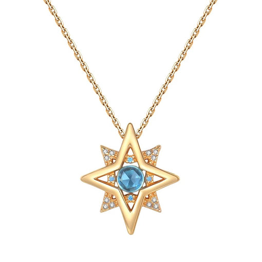 18K Gold Blue Topaz Octagonal Star Pendant Necklace