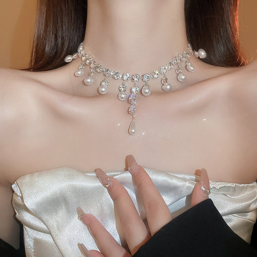 Diamond Pearl Tassel Droplet Shaped Necklace