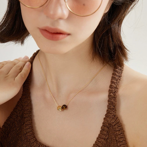 Golden tiger-eye Geometric Liquid Metal Necklace