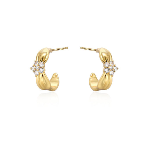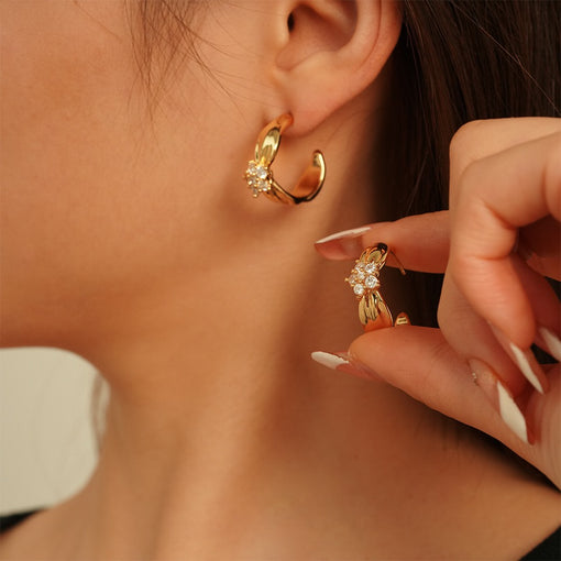 Irregular Pleated Geometric C-shaped Diamond Studded Snowflake Earrings