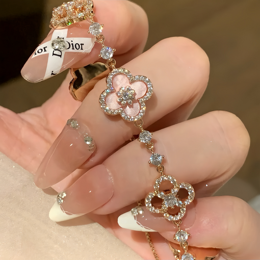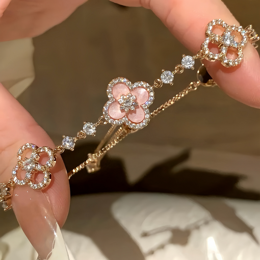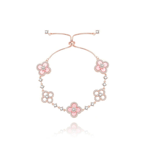 Pink Fritillaria Four Leaf Clover Adjustable Bracelet