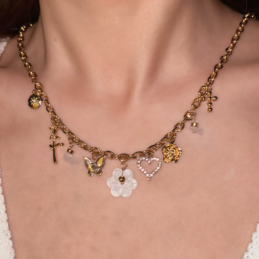Punk-Style Floral Butterfly Heart Pendant Necklace
