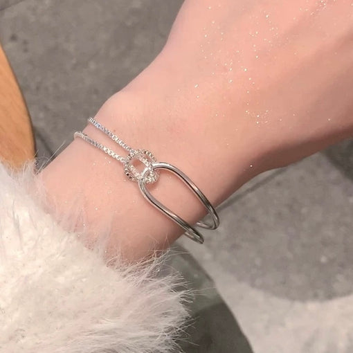 S925 Pure Silver Asymmetrical Knotted Half Chain Bracelet