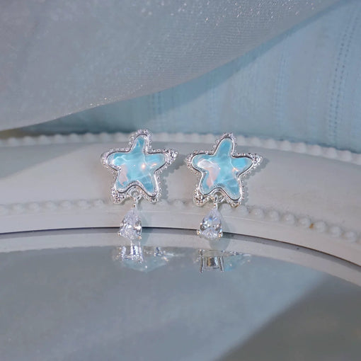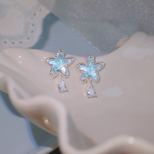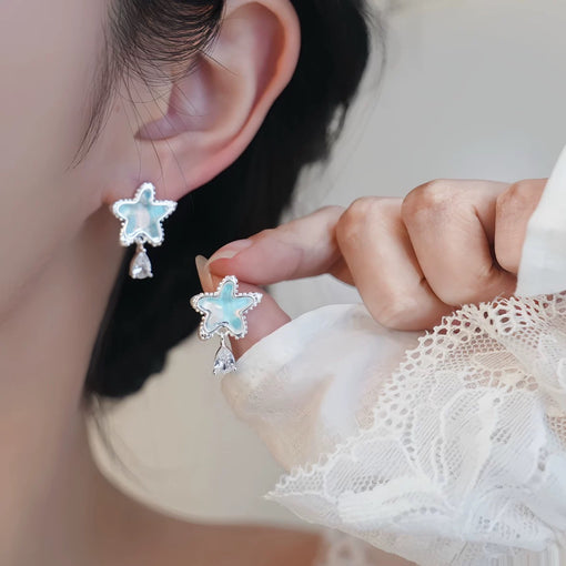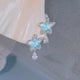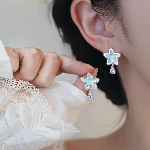 Inspired by a serene summer moment by the sea — where a starfish rests quietly in the tide, and sparkling drops of water catch the sunlight. This design blends the softness of a waterdrop silhouette with the whimsical charm of a blue starfish, capturing the essence of freedom, calm, and ocean magic. Like a memory from a sun-drenched shore, these earrings bring a gentle wave of peace and wonder to your everyday look.