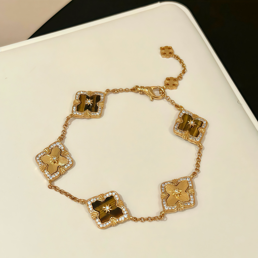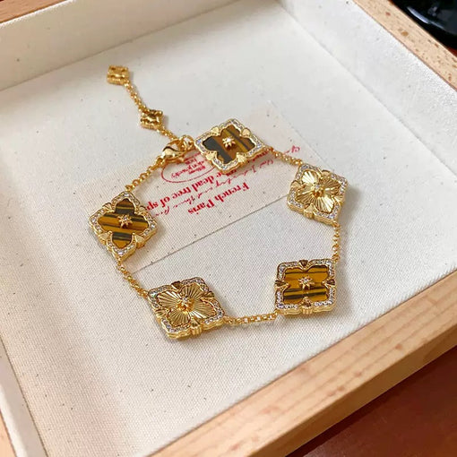 Tiger Eye Stone Diamond Shaped Flower Bracelet