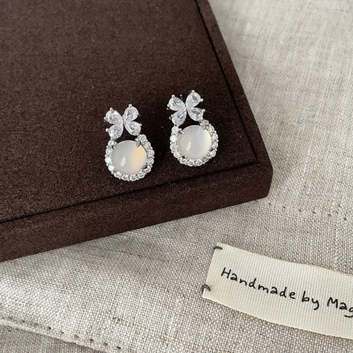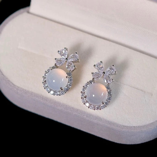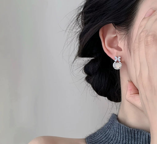 Material: White Agate/Copper Gold Plated/S925 Silver Needle